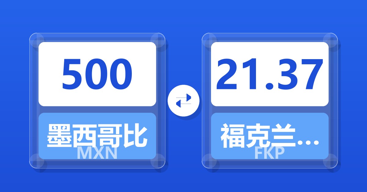 500 墨西哥比索 (MXN) = 21.37 福克兰群岛镑 (FKP)