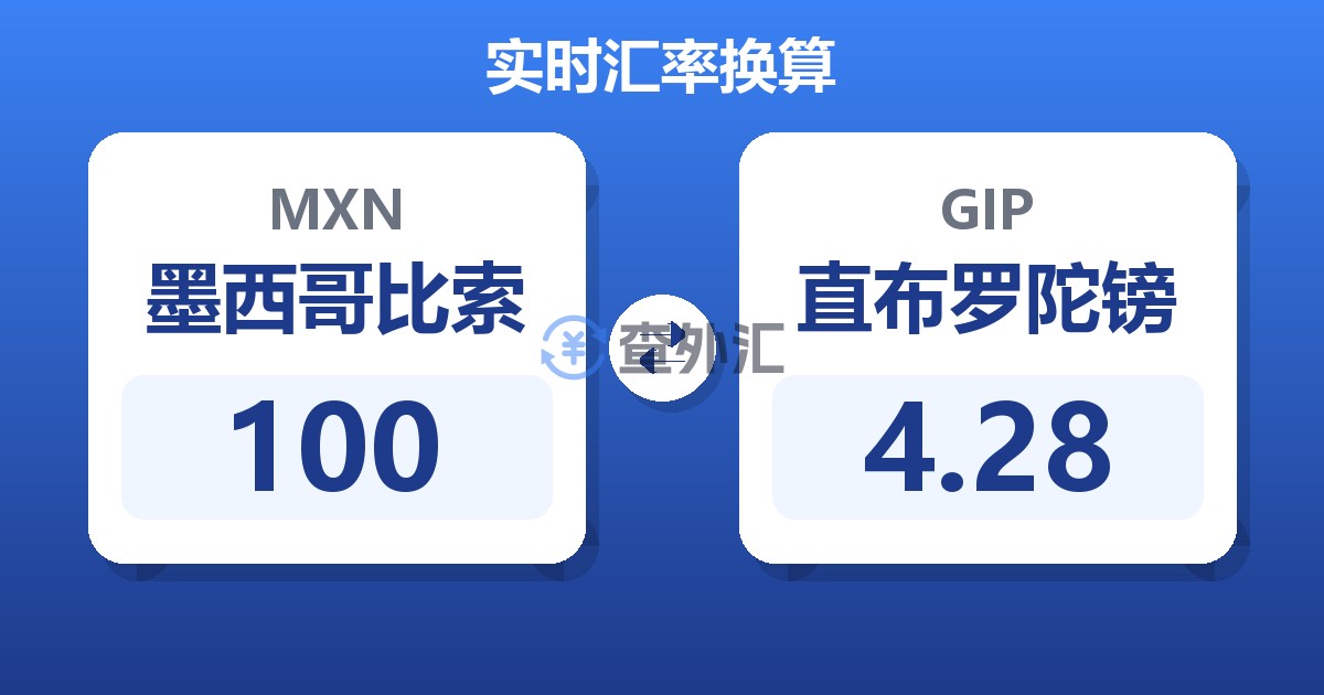 100 墨西哥比索 (MXN) = 4.27 直布罗陀镑 (GIP)