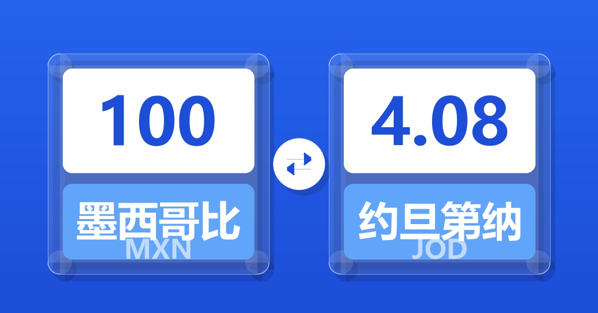 100 墨西哥比索 (MXN) = 4.07 约旦第纳尔 (JOD)