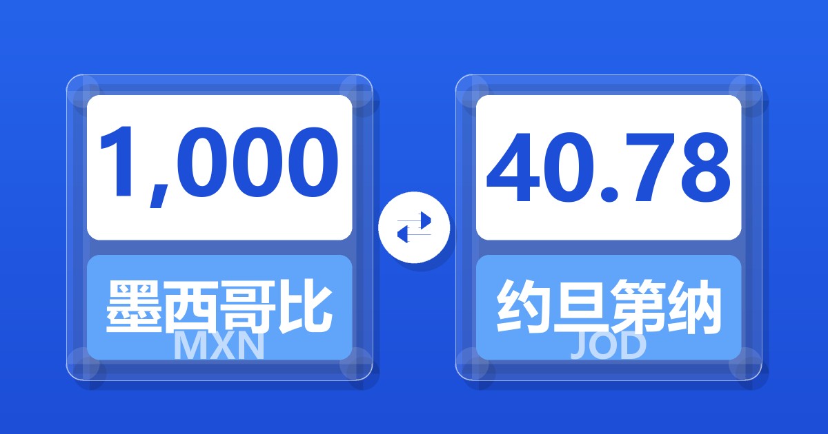 1,000 墨西哥比索 (MXN) = 40.66 约旦第纳尔 (JOD)