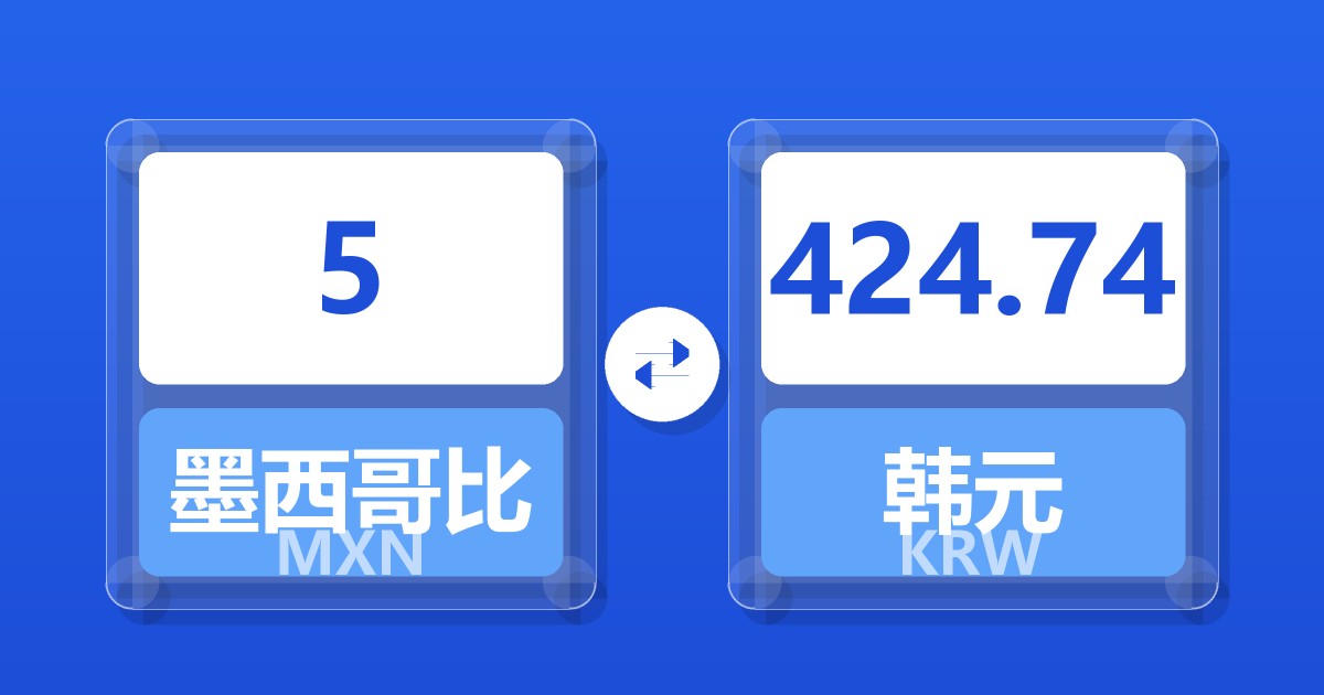 5 墨西哥比索 (MXN) = 423.87 韩元 (KRW)