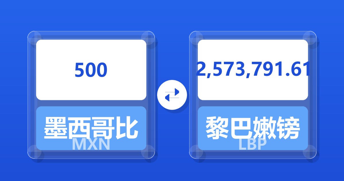 500 墨西哥比索 (MXN) = 2,566,632.06 黎巴嫩镑 (LBP)