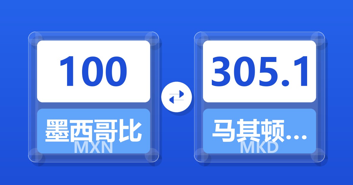 100 墨西哥比索 (MXN) = 306.69 马其顿第纳尔 (MKD)