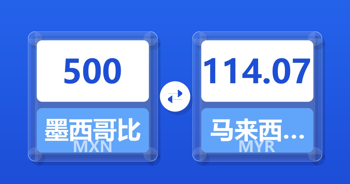 500 墨西哥比索 (MXN) = 114.07 马来西亚林吉特 (MYR)