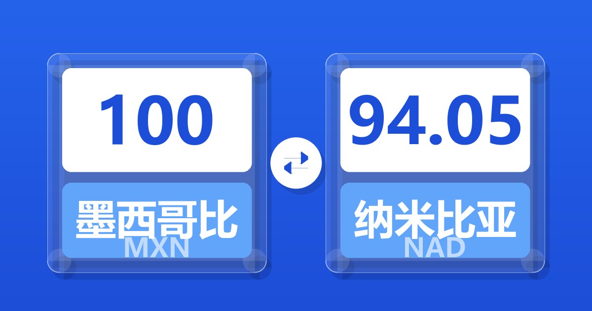 100 墨西哥比索 (MXN) = 94.05 纳米比亚元 (NAD)