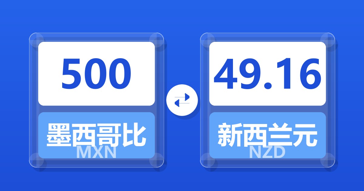 500 墨西哥比索 (MXN) = 49.22 新西兰元 (NZD)