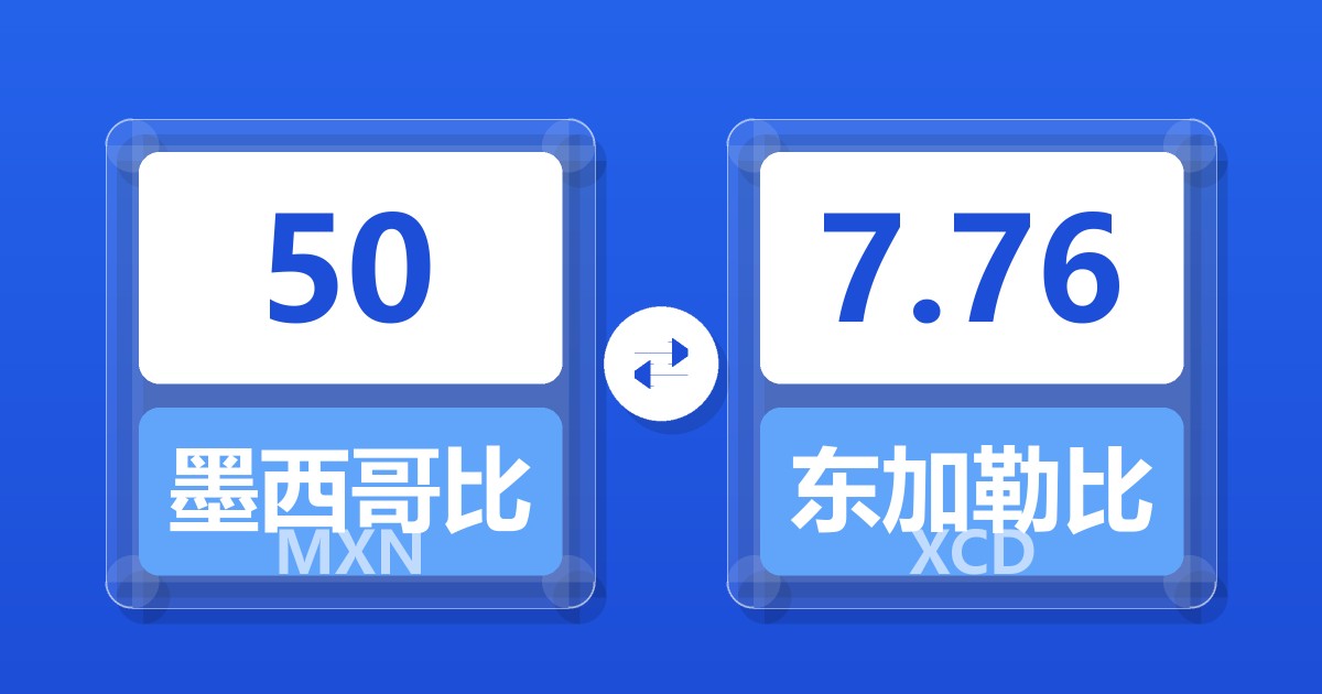 50 墨西哥比索 (MXN) = 7.74 东加勒比元 (XCD)