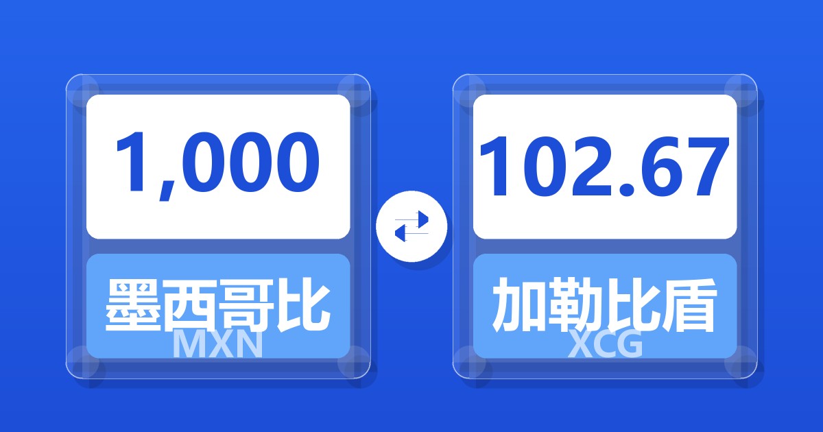 1,000 墨西哥比索 (MXN) = 102.67 加勒比盾 (XCG)