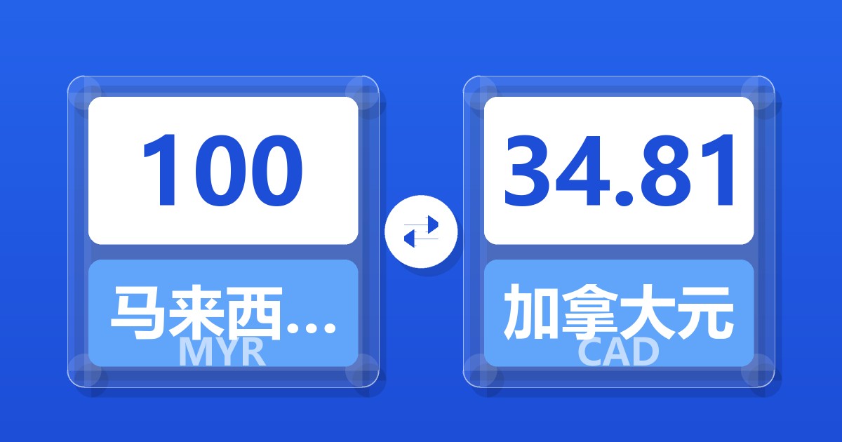 100 马来西亚林吉特 (MYR) = 34.81 加拿大元 (CAD)