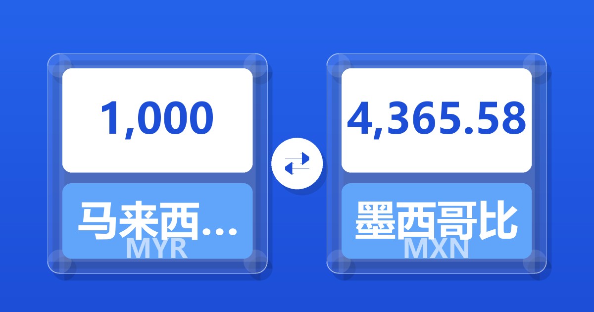 1,000 马来西亚林吉特 (MYR) = 4,383.37 墨西哥比索 (MXN)