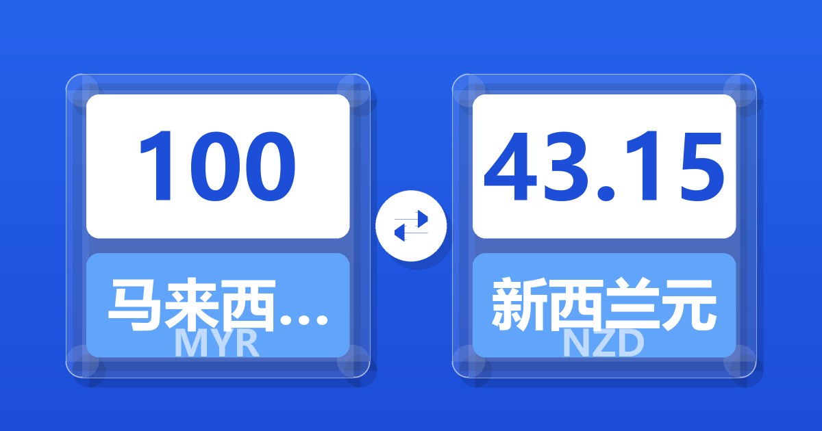 100 马来西亚林吉特 (MYR) = 43.15 新西兰元 (NZD)