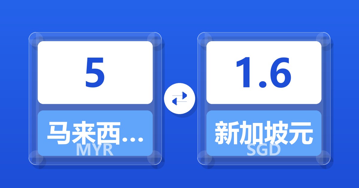 5 马来西亚林吉特 (MYR) = 1.60 新加坡元 (SGD)