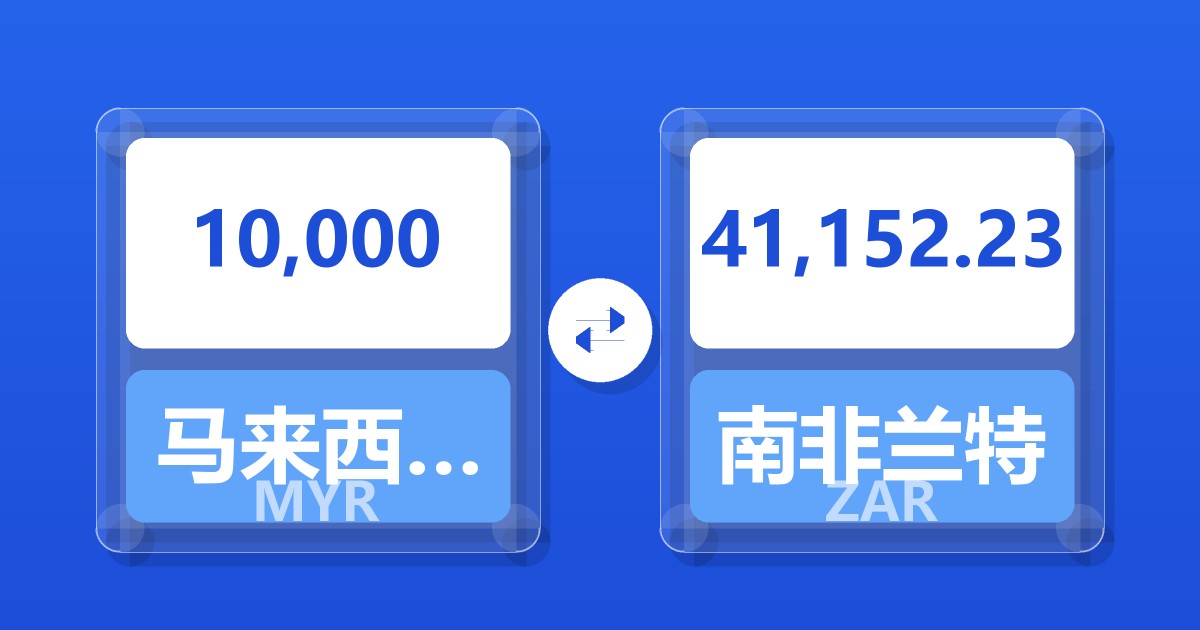 10,000 马来西亚林吉特 (MYR) = 41,228.63 南非兰特 (ZAR)