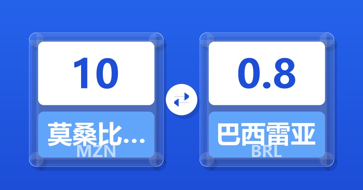 10 莫桑比克梅蒂卡尔 (MZN) = 0.80 巴西雷亚尔 (BRL)