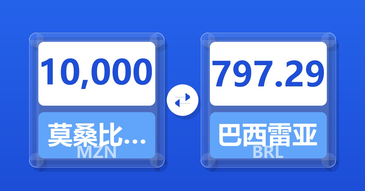 10,000 莫桑比克梅蒂卡尔 (MZN) = 799.98 巴西雷亚尔 (BRL)