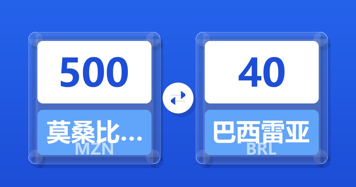 500 莫桑比克梅蒂卡尔 (MZN) = 40.00 巴西雷亚尔 (BRL)