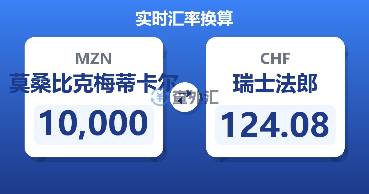 10,000 莫桑比克梅蒂卡尔 (MZN) = 123.93 瑞士法郎 (CHF)