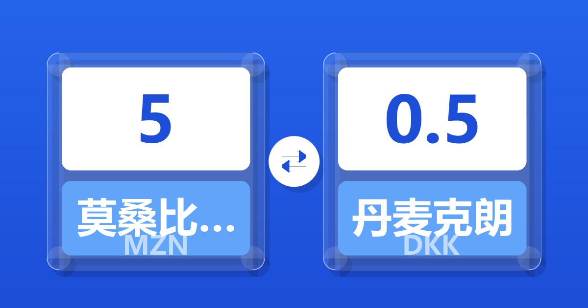 5 莫桑比克梅蒂卡尔 (MZN) = 0.50 丹麦克朗 (DKK)