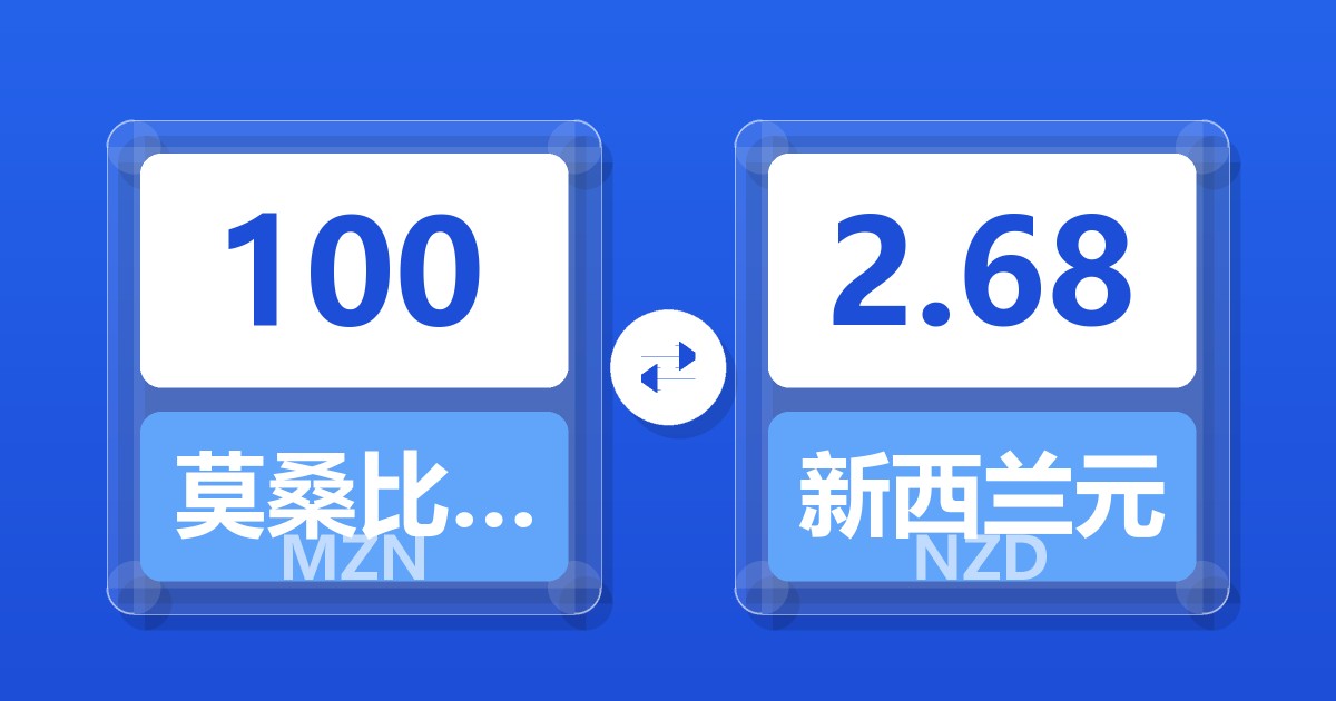 100 莫桑比克梅蒂卡尔 (MZN) = 2.69 新西兰元 (NZD)