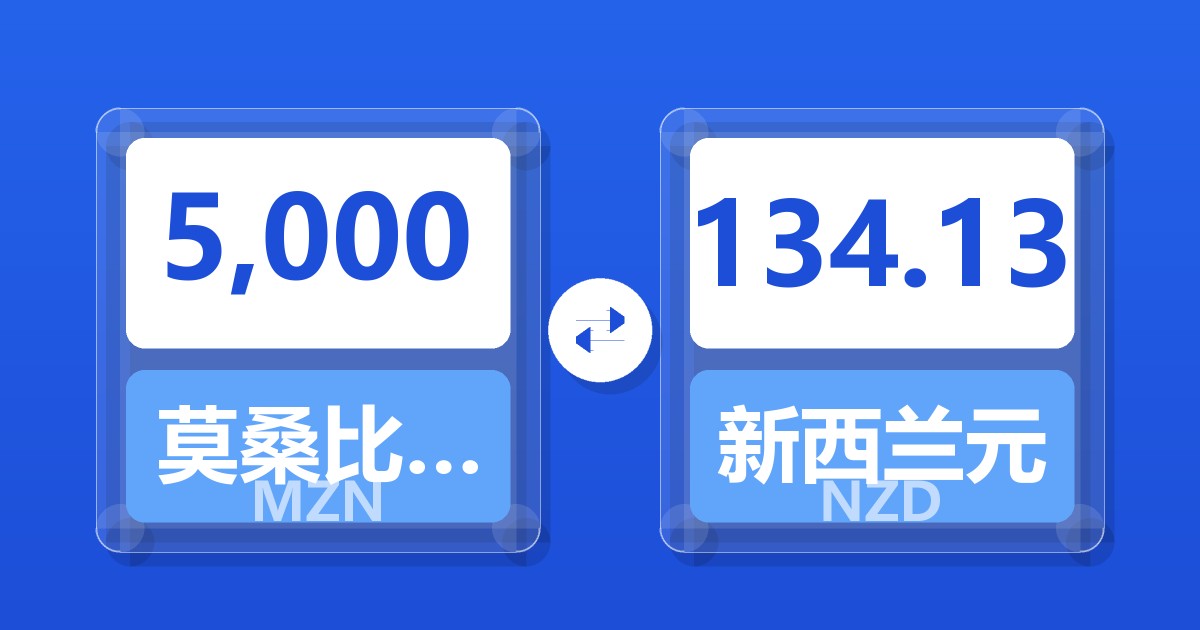 5,000 莫桑比克梅蒂卡尔 (MZN) = 134.53 新西兰元 (NZD)