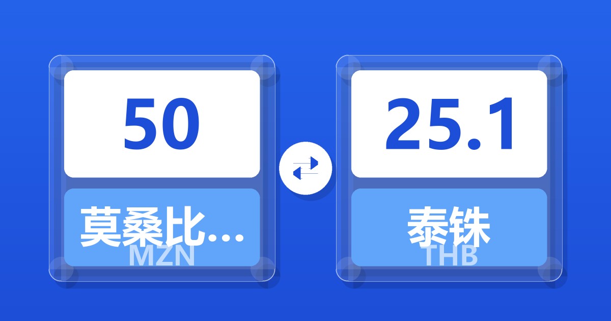 50 莫桑比克梅蒂卡尔 (MZN) = 25.10 泰铢 (THB)