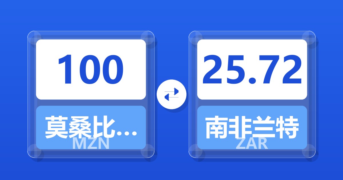 100 莫桑比克梅蒂卡尔 (MZN) = 25.71 南非兰特 (ZAR)