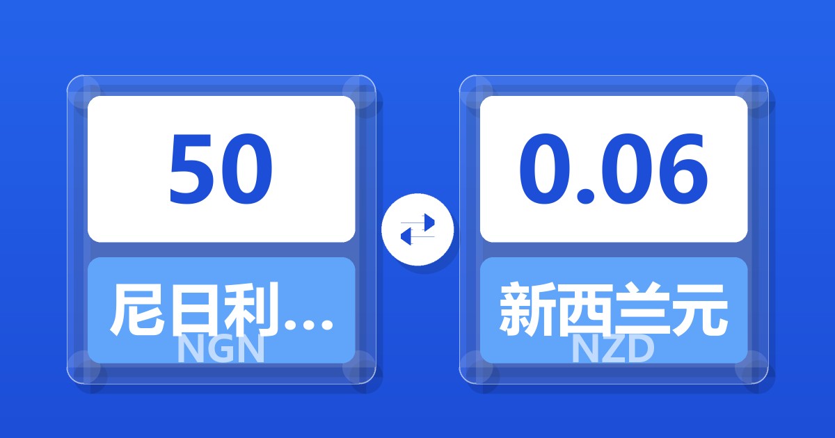 50 尼日利亚奈拉 (NGN) = 0.06 新西兰元 (NZD)