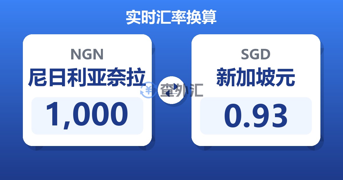 1,000 尼日利亚奈拉 (NGN) = 0.93 新加坡元 (SGD)