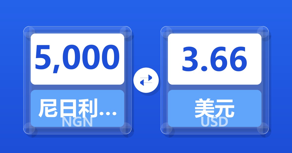 5,000 尼日利亚奈拉 (NGN) = 3.65 美元 (USD)