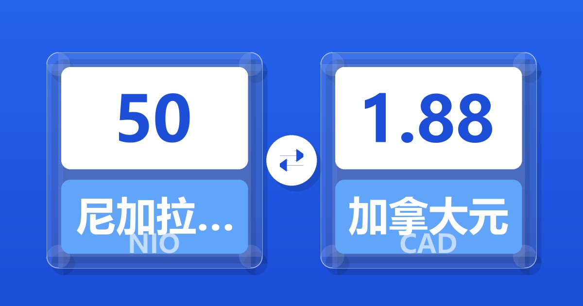 50 尼加拉瓜科多巴 (NIO) = 1.88 加拿大元 (CAD)