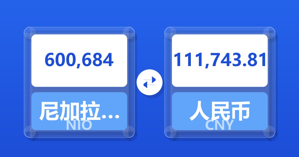 600,684 尼加拉瓜科多巴 (NIO) = 111,759.87 人民币 (CNY)