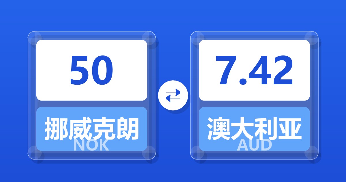 50 挪威克朗 (NOK) = 7.42 澳大利亚元 (AUD)