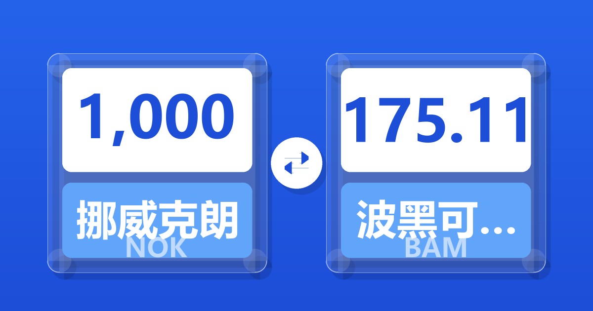 1,000 挪威克朗 (NOK) = 175.11 波黑可兑换马克 (BAM)