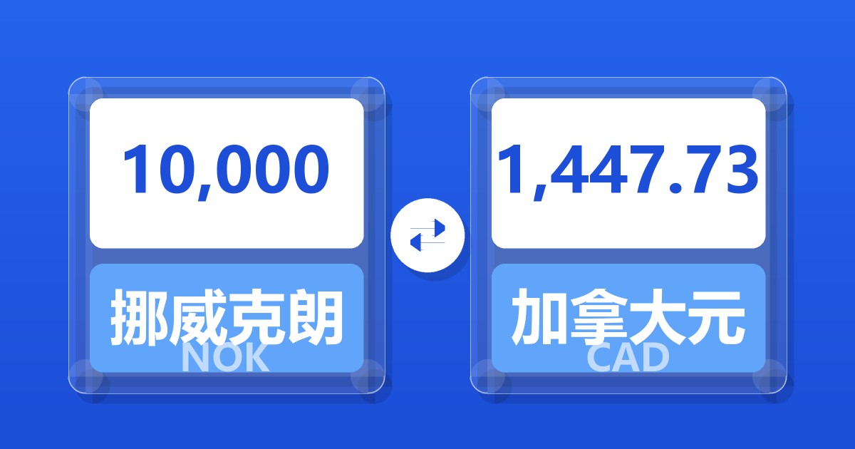 10,000 挪威克朗 (NOK) = 1,447.73 加拿大元 (CAD)