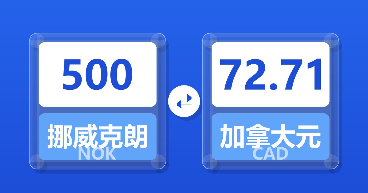 500 挪威克朗 (NOK) = 72.39 加拿大元 (CAD)