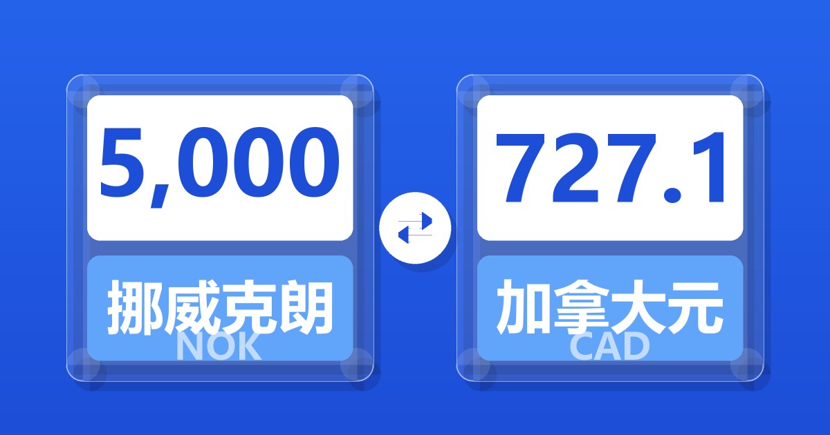 5,000 挪威克朗 (NOK) = 723.87 加拿大元 (CAD)