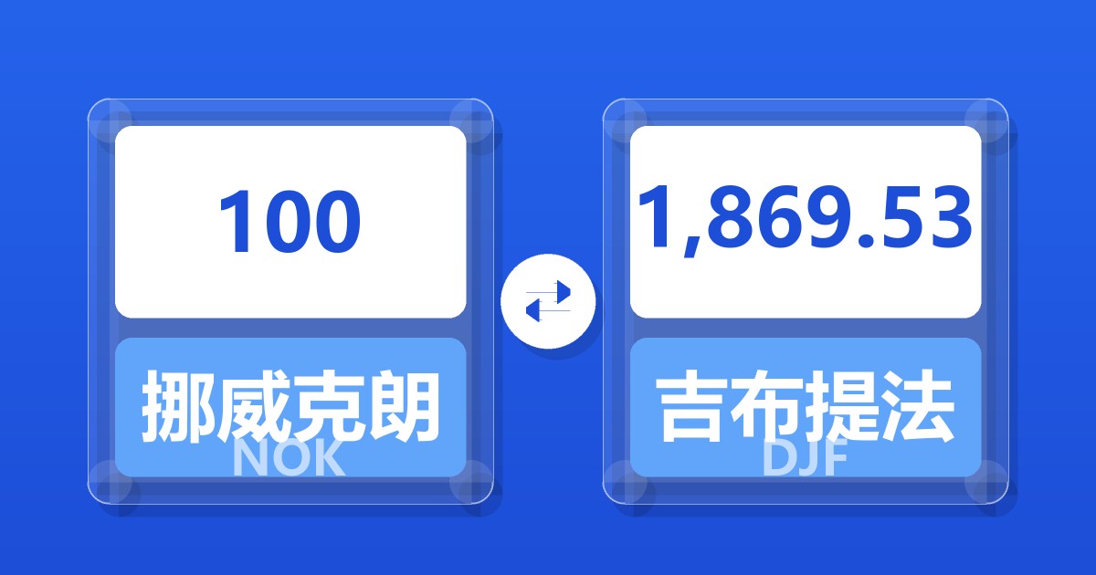 100 挪威克朗 (NOK) = 1,858.11 吉布提法郎 (DJF)
