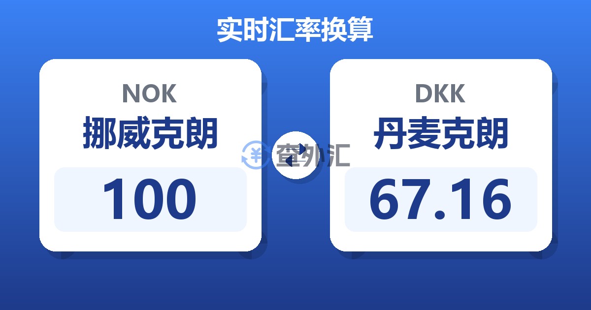 100 挪威克朗 (NOK) = 66.78 丹麦克朗 (DKK)