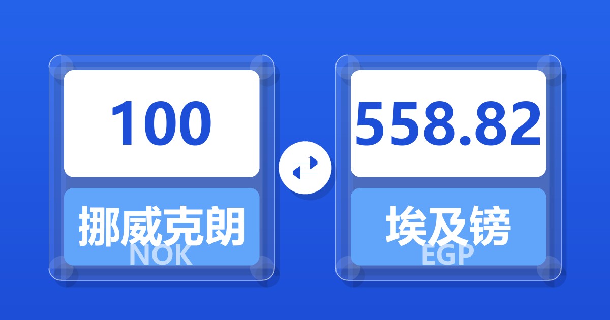 100 挪威克朗 (NOK) = 557.48 埃及镑 (EGP)