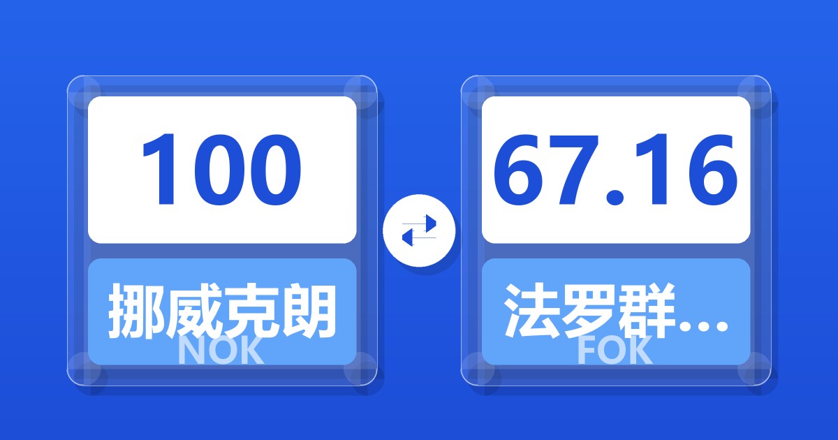 100 挪威克朗 (NOK) = 66.78 法罗群岛克朗 (FOK)