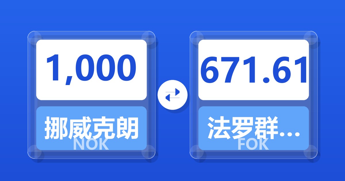 1,000 挪威克朗 (NOK) = 667.85 法罗群岛克朗 (FOK)