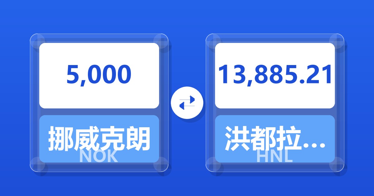 5,000 挪威克朗 (NOK) = 13,885.21 洪都拉斯伦皮拉 (HNL)