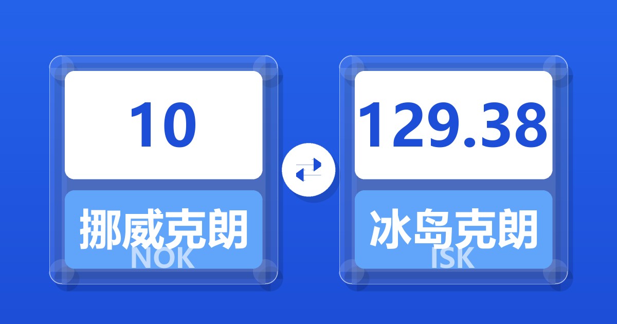 10 挪威克朗 (NOK) = 128.63 冰岛克朗 (ISK)