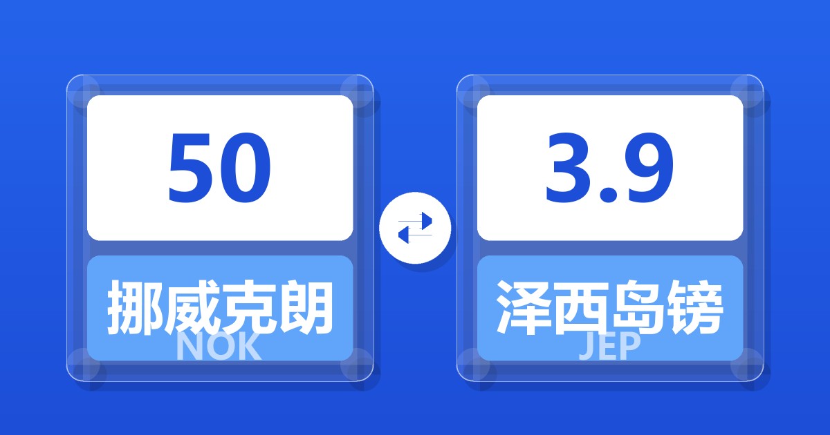 50 挪威克朗 (NOK) = 3.90 泽西岛镑 (JEP)
