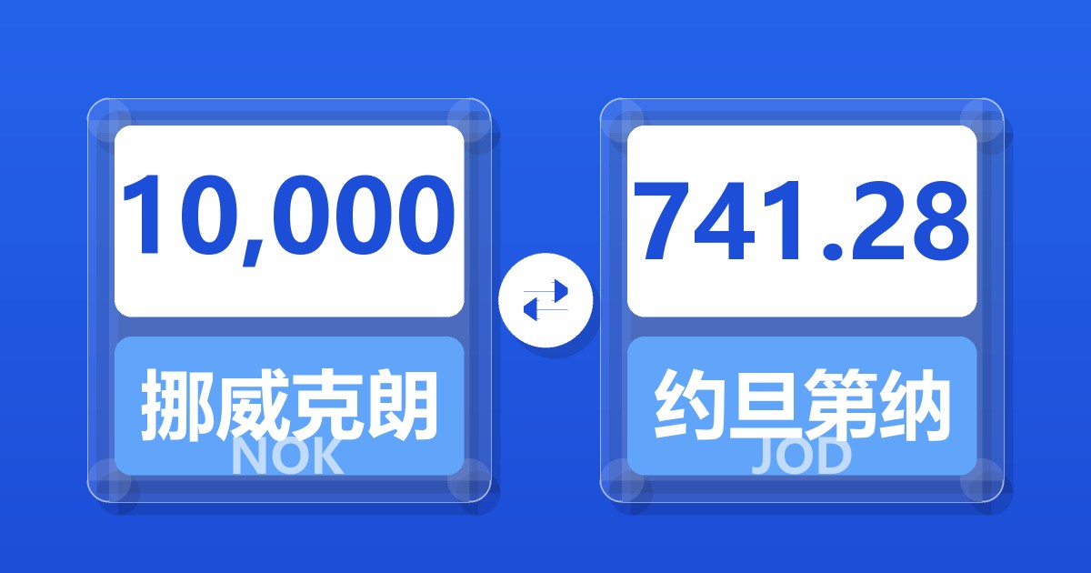 10,000 挪威克朗 (NOK) = 741.28 约旦第纳尔 (JOD)