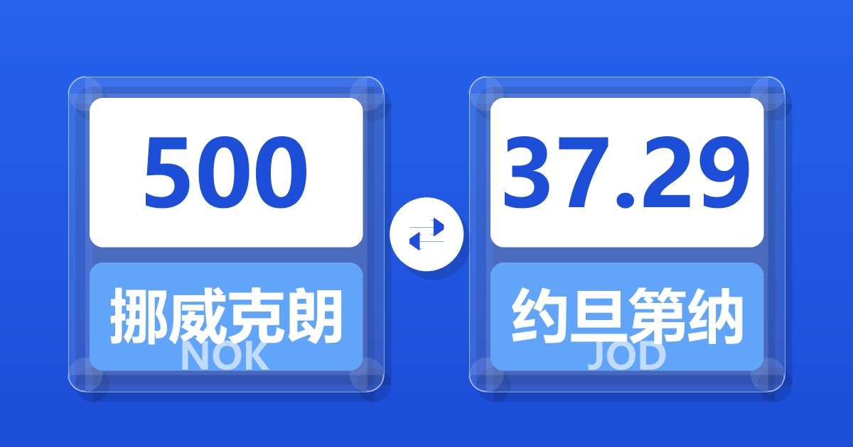 500 挪威克朗 (NOK) = 37.06 约旦第纳尔 (JOD)
