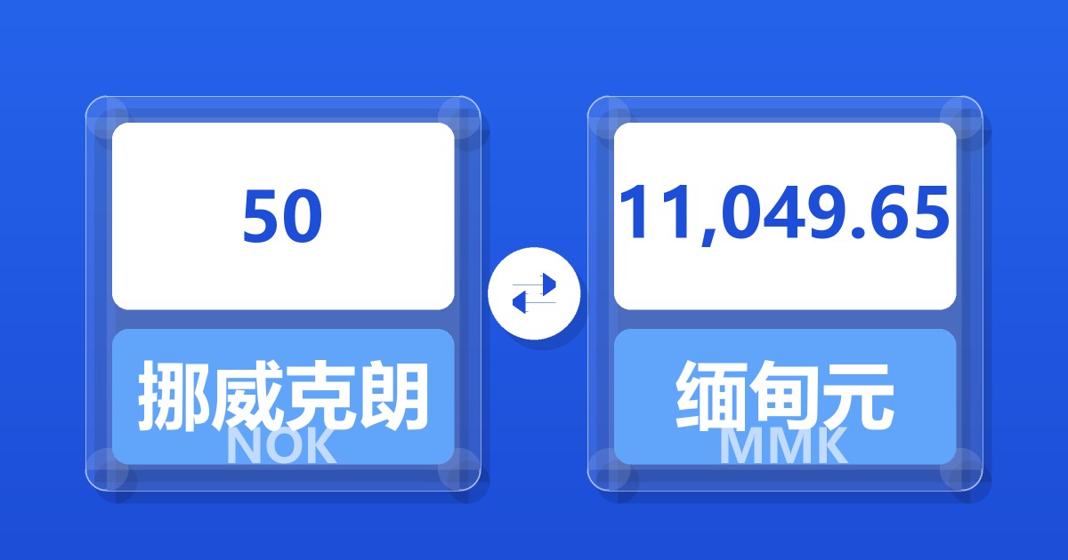 50 挪威克朗 (NOK) = 10,984.31 缅甸元 (MMK)