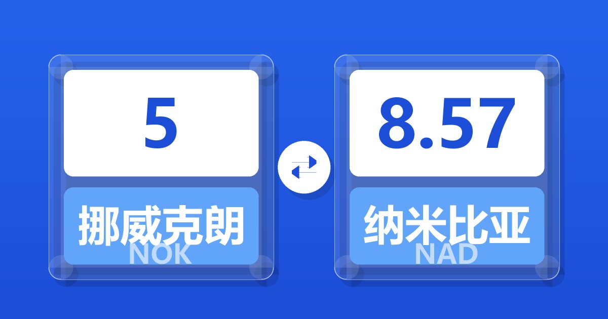 5 挪威克朗 (NOK) = 8.57 纳米比亚元 (NAD)