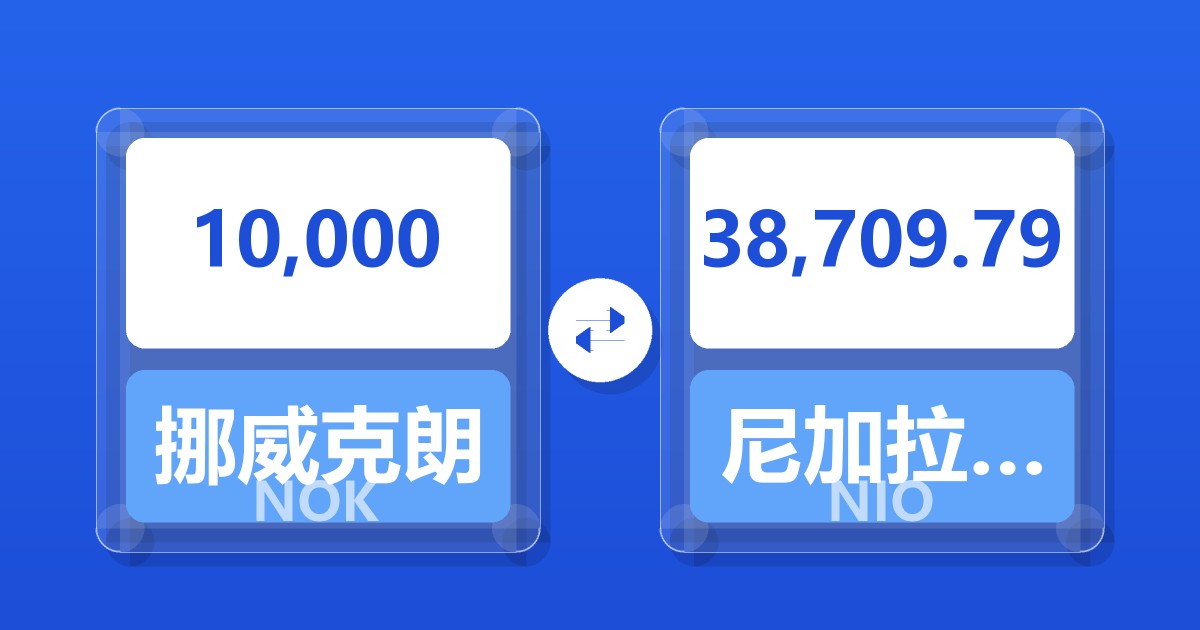 10,000 挪威克朗 (NOK) = 38,457.23 尼加拉瓜科多巴 (NIO)