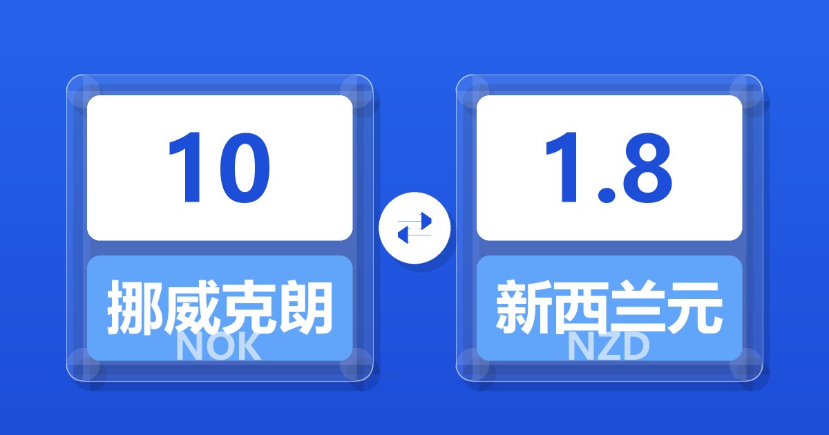 10 挪威克朗 (NOK) = 1.79 新西兰元 (NZD)
